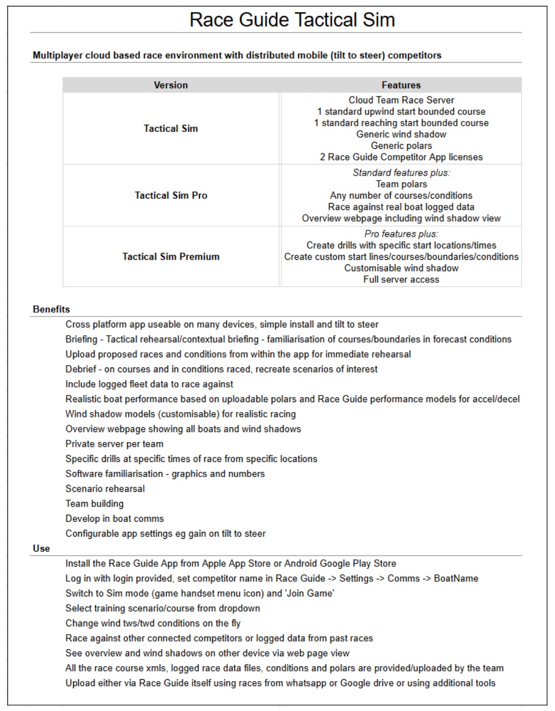 Novel techniques remove the noise and variation historically seen with tactical aids so the software runs out of the box, whilst keeping the option for more bespoke configuration via the addition of broader performance data, more detailed environmental data predictions and, for Race Guide Nav Hub, more in depth understanding of the sensor data on board. These will push the performance gains further, maximising the potential of the guidance.